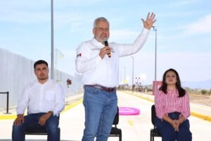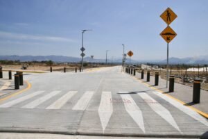 Resaltó que se invirtieron 44.9 millones de pesos en esta vialidad de 2.2 kilómetros de longitud construida con concreto hidráulico MR45; así como más de 7 mil metros cuadrados de banquetas con guarnición, colocación de drenaje, más de 90 luminarias solares y 110 bolardos para garantizar la seguridad vial de los y los estudiantes y de toda la comunidad.
