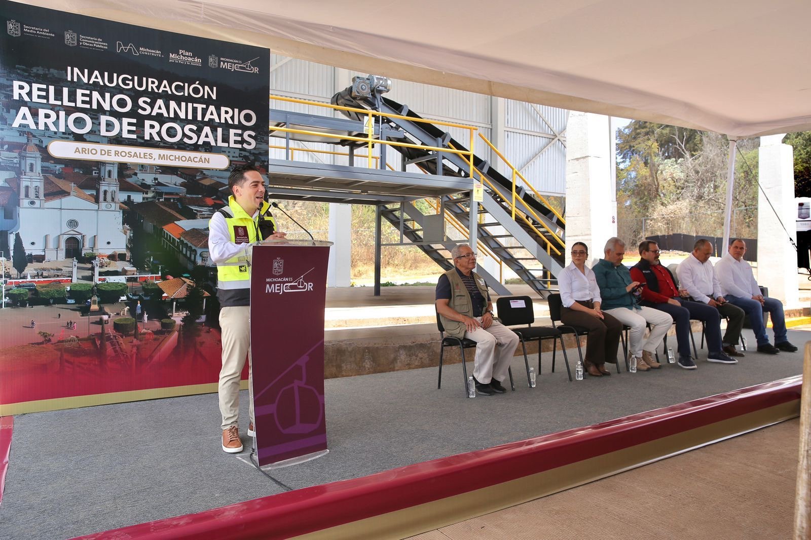 Por su parte, el secretario de Medio Ambiente, Alejandro Méndez López, informó que esta obra se suma a otros Centros Intermunicipales para el Tratamiento Integral de Residuos Sólidos (CITIRS) construidos durante la administración de Ramírez Bedolla, ubicados en Uruapan, Hidalgo, Sahuayo, Coahuayana y Aquila.