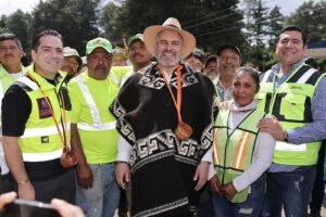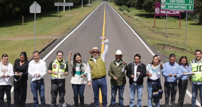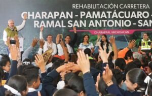 El mandatario detalló que la rehabilitación de esta carretera, por donde transitan más de 5 mil vehículos al día, beneficia a alrededor de 14 mil habitantes de comunidades con autogobierno de los municipios de Charapan y Los Reyes, con trayectos seguros y más rápidos.
