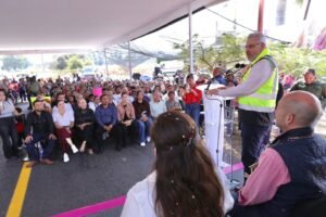 *Huandacareo, Michoacán, 2 de diciembre de 2025.-* El gobernador Alfredo Ramírez Bedolla inauguró la rehabilitación carretera San José Cuaro-Tupátaro, la cual impulsará la atracción de turistas y visitantes de municipios vecinos de Guanajuato, a la zona de balnearios de Huandacareo.