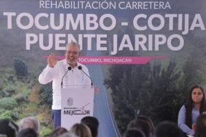 «Hace algunos años esta región estaba abandonada, con caminos en muy mal estado, por eso, se decidió arreglar la carretera en un tramo superior a 56 kilómetros, desde el entronque Los Reyes-Jacona, Tocumbo-Santa Inés y Cotija -Jaripo en Villamar, dentro del esquema de obras multianuales, por lo que contará con mantenimiento constante hasta el año 2027», señaló.