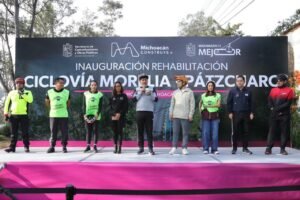 Inaugura Bedolla rehabilitación de 19 km de ciclovía tenencia Morelos-Tiripetío