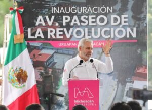 “Queremos que Uruapan se convierta en el eje estatal de la economía nacional con el respaldo de la presidenta Claudia Sheinbaum Pardo quien construirá la autopista Uruapan-Zamora y la vialidad a cuatro carriles de la planta de Pemex de Uruapan a Ziracuaretiro”, comentó.