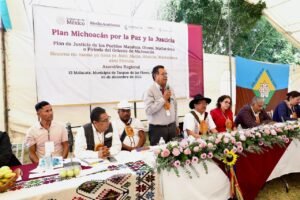 “Nuestra presidenta Claudia Sheinbaum Pardo tomó la decisión de que fortalezcamos los planes de justicia indígena en Michoacán y hoy estamos con ustedes iniciando este proceso. Esto algo nuevo, no se había hecho en el país hasta que el 1 de diciembre de 2018 llegó a la presidencia Andrés Manual López Obrador”, manifestó Regino Montes.