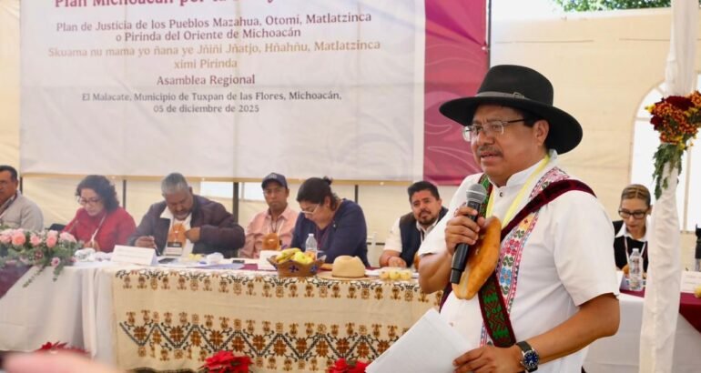 *Tuxpan, Michoacán, 5 de diciembre de 2025.-* El director general del Instituto Nacional de los Pueblos Indígenas (INPI), Adelfo Regino Montes, visitó el oriente de Michoacán para encabezar la primera asamblea del Plan de Justicia de los Pueblos Mazahua, Otomí, Matlatzinca o Pirinda, para construir acuerdos de manera conjunta que beneficien a la población de las comunidades originarias.