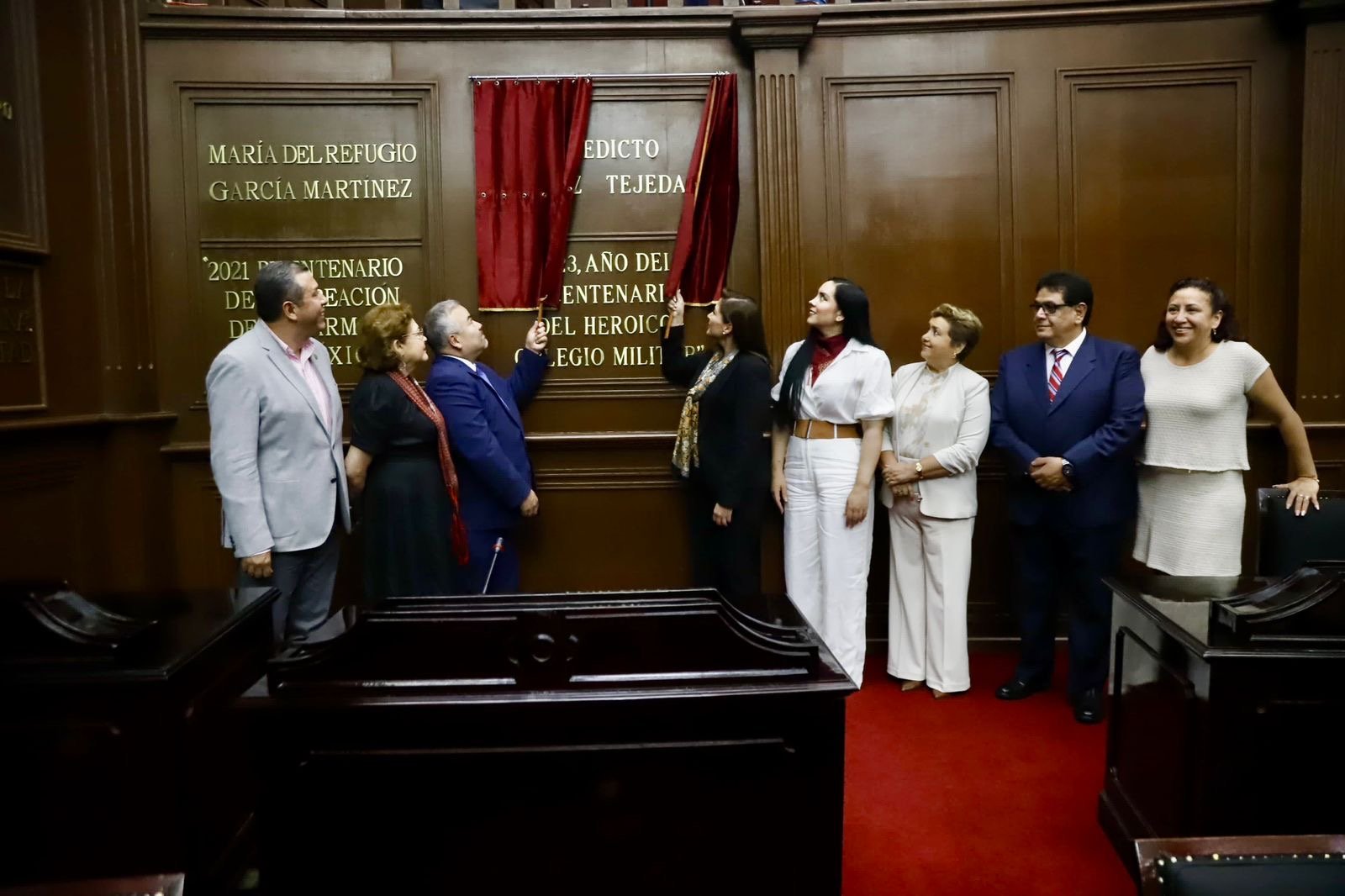 *Morelia, Michoacán, a 22 de agosto de 2024.-* La 75 Legislatura del Congreso del Estado, rindió honores al insurgente Benenicto López Tejeda, al inscribir su nombre en letras doradas en el Muro de Honor del Palacio Legislativo.
