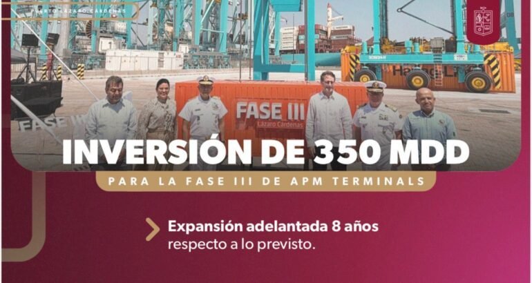 *Morelia, Michoacán, 23 de marzo de 2026.-* Con una nueva inversión de 350 millones de dólares, por parte de la empresa operadora portuaria APM Terminals, el puerto de Lázaro Cárdenas aumentará su capacidad de carga a 4 millones 200 mil TEUs al año, informó el gobernador Alfredo Ramírez Bedolla.