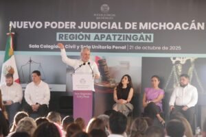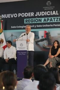 “Descentralizamos el Poder Judicial”, destacó el mandatario, quien detalló que la ciudadanía de la región Apatzingán ya no tendrá que trasladarse hasta Morelia para acceder a la justicia, como ya también ocurre en las zonas de La Piedad, Zamora, Zitácuaro, Uruapan y Morelia.
