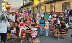 De ahí, del frente de la alcaldía y la plaza, parte el contingente; el recorrido en sí, es el corazón de la Ch’anantskua, con el baile, el juego, cascarones y el movimiento de los participantes. Fue una gran fiesta, aquí, en la cabecera municipal de la Cañada de los Once Pueblos.