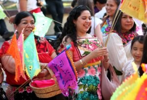 Personas de todas las edades, ataviados con la vestimenta tradicional con bordados a mano en punto de cruz, se realizó esta festividad, donde, a través del juego, el convivio y la participación colectiva, se enseñan valores, como la responsabilidad, el respeto, la reciprocidad y la pertenencia comunitaria.