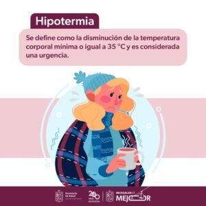 *Morelia, Michoacán, 16 de diciembre de 2024.-* Durante la temporada invernal incrementa el riesgo de padecer hipotermia, por ello la Secretaría de Salud de Michoacán (SSM) te dice qué hacer en caso de detectarla.