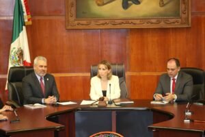 Durante la sesión extraordinaria solemne que se llevó a cabo en el Palacio de Justicia, Ramírez Bedolla reconoció la labor jurisdiccional que realiza el Tribunal en materia Anticorrupción y Administrativa de Michoacán, a favor de las y los ciudadanos. “Es fundamental para la democracia, la gobernabilidad y la participación ciudadana”, remarcó.