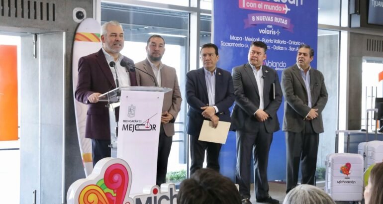 El mandatario destacó que las ocho nuevas rutas de la aerolínea Volaris permitieron un incremento del 15.4 por ciento de pasajeros al aeropuerto de la capital michoacana con respecto al 2024, al pasar de un millón 304 mil 600 a 1.5 millones el año pasado.