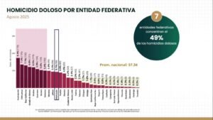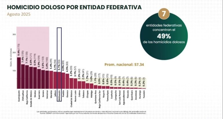 *Michoacán entre los estados con mayor reducción de homicidios dolosos en toda la República; de acuerdo a cifras del Secretario Ejecutivo del Sistema Nacional de Seguridad Pública, se dio a conocer en la Mañanera del Pueblo, de la presidenta Claudia Sheinbaum.*