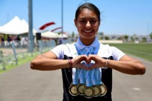 *Morelia, Michoacán, 13 de agosto de 2025.-* La destacada atleta michoacana, Naim Bucio Martínez, será una de las representantes de Michoacán que participará en los Juegos Panamericanos Junior Asunción 2025, que se llevarán a cabo en Paraguay, en donde bajo el acompañamiento de su entrenador Iván Díaz Villa, buscará subir al podio continental en la disciplina de patines sobre ruedas, y clasificar a los Juegos Panamericanos Lima 2027.
