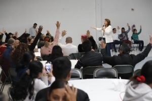 Participó en la asamblea de la asociación «Nicolaitas en Acción», en la que su titular Noé Jiménez Díaz, le dio la bienvenida y desde donde la legisladora especialista en políticas públicas con perspectiva de género compartió que la Presienta Claudia Sheinbaum Pardo va a poner en la Constitución Mexicana presidenta con «a», porque solo dice presidente con «e», pero también «queremos que diga arquitectas, ingenieras, licenciadas, maestras, diputadas y gobernadoras, porque es tiempo de mujeres».