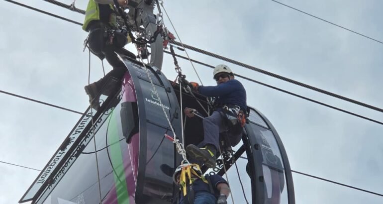 El programa incluyó también la instalación de puntos de anclaje, apertura manual de cabinas en emergencia y uso de herramientas especializadas de progresión (equipo Milwaukee), así como protocolos de inspección, mantenimiento de arneses y sistemas de cable.