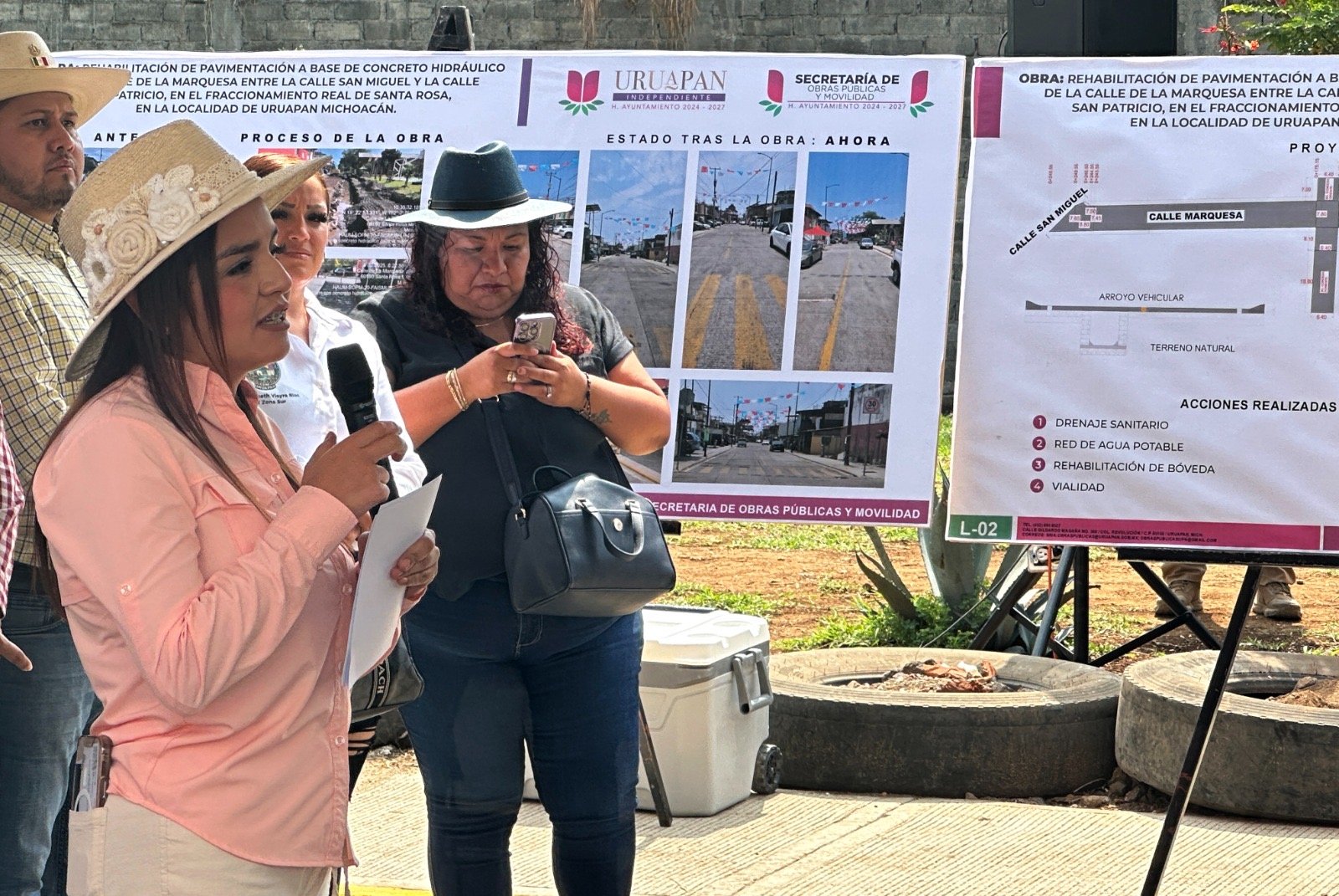 URUAPAN, Michoac谩n, 22 de abril de 2026.- Dos de las principales calles del Fraccionamiento Real de Santa Rosa, al oriente de la ciudad, fueron inauguradas, tras ser rehabilitadas con concreto hidr谩ulico, red de agua potable y drenaje sanitario, donde se tuvo una inversi贸n de m谩s de 20 millones de pesos.