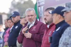*Zacán, Michoacán, 9 de enero de 2025.-* Para reforzar la seguridad en el tramo carretero Uruapan-Peribán, el gobernador Alfredo Ramírez Bedolla en la comunidad con autogobierno de Zacán, puso en marcha el operativo Guardianes del Camino, integrado por Guardia Civil, Ejército Mexicano y Guardia Nacional.