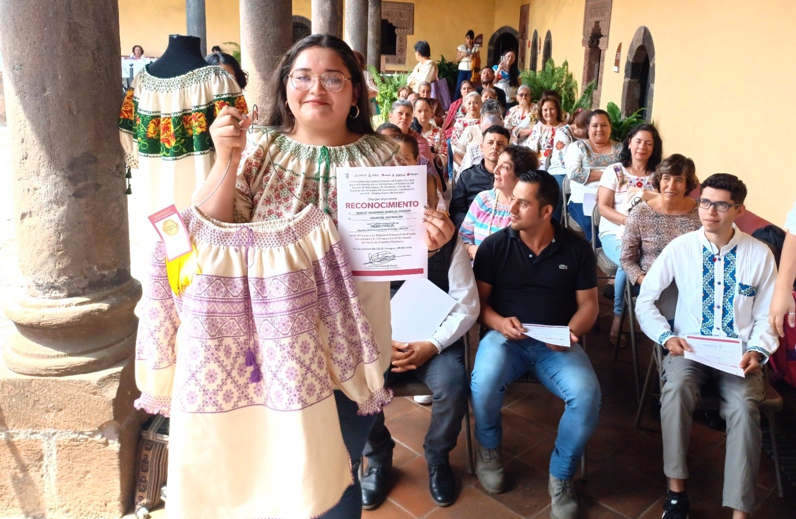 La mejor pieza de maque, fue de Cristhiam Benjamín Torres Cervantes y la mejor de textil bordado, de Susana Servín Galván. Mientras que el premio especial a la mejor pieza del concurso, fue para Dennise Alejandra Zendejas Escobar, con un guanengo.