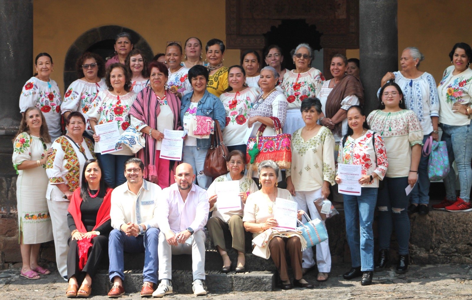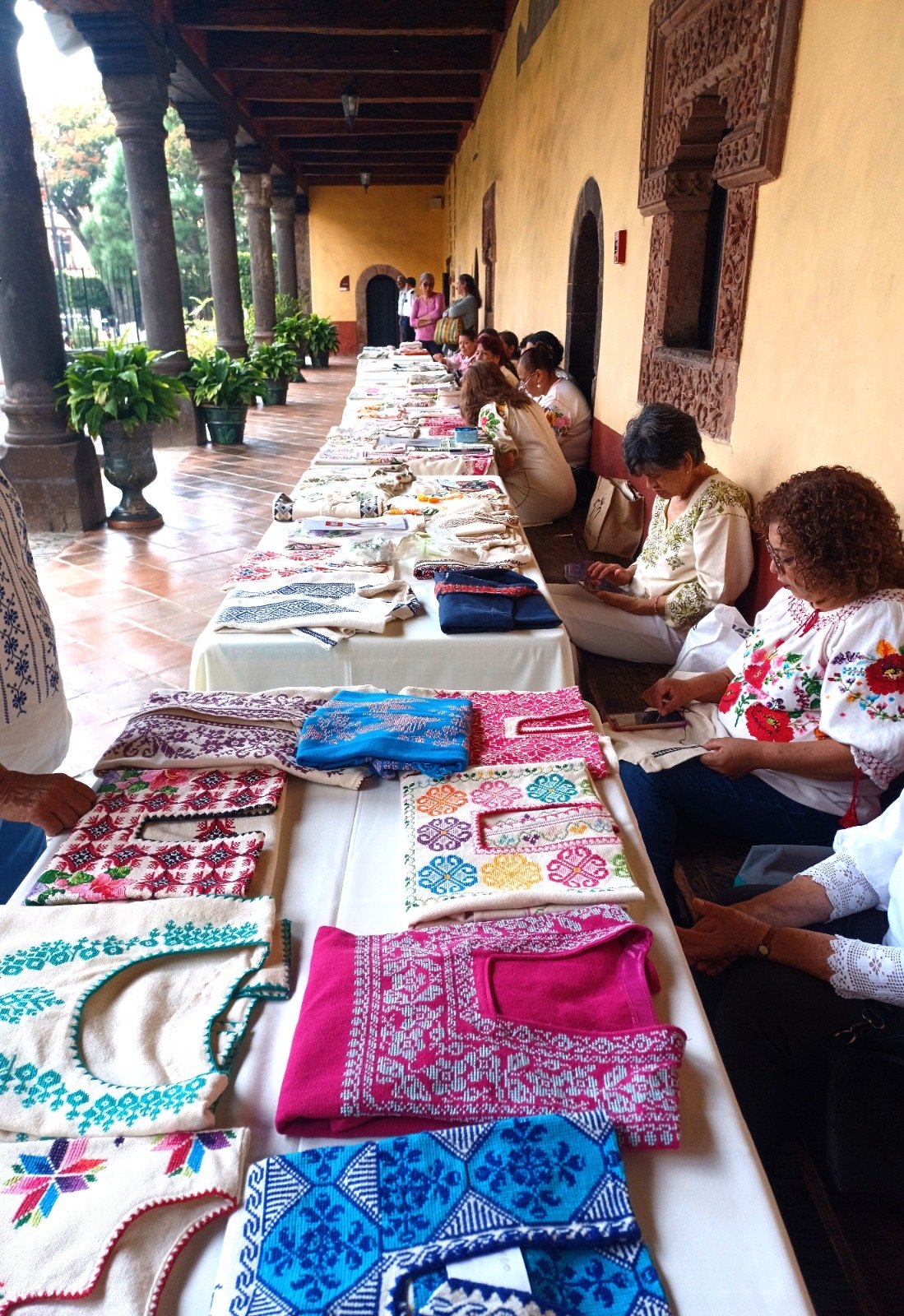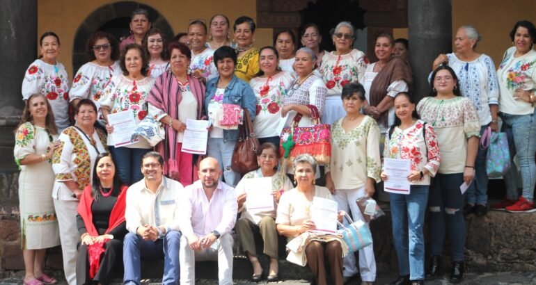 Textil de algodón bordado, maestras, María Graciela Torres Licea, Isabel Pérez Hidalgo y María Yolanda Corza Plancarte. Nuevos valores, Carolina Rodríguez Villalobos, Fidelina González Sánchez y Élida Solorio Solorio.