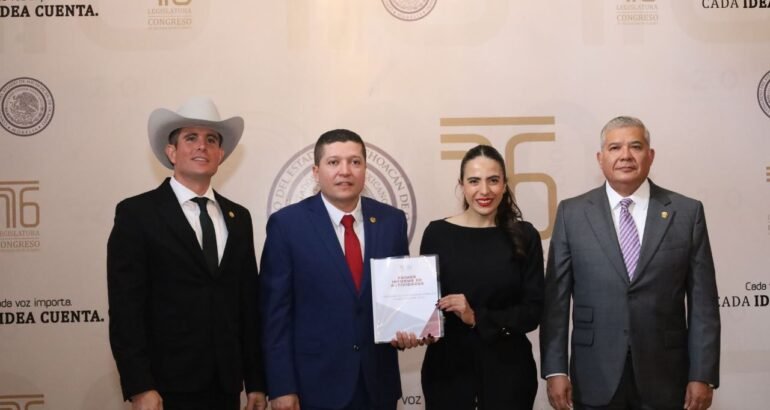 Acompañado de los legisladores Juan Antonio Magaña de la Mora y Carlos Alejando Bautista Tafolla, el legislador por el Distrito XIX con sede en Tacámbaro, hizo entrega del documento que contiene las acciones realizadas por parte de esa Comisión, a la diputada presidenta de la Mesa Directiva de la LXXVI Legislatura del Congreso de Michoacán, Giulianna Bugarini Torres.
