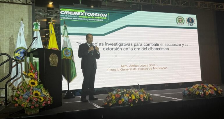 Bogotá, Colombia, a 13 de noviembre de 2024.- Tras reconocer los avances que se han dado en Michoacán para contar con un marco normativo que atienda, investigue y sancione el delito de extorsión, el Fiscal General del Estado de Michoacán, Adrián López Solís, se pronunció por la relevancia de contar con una estrategia nacional para atender y enfrentar la extorsión y los delitos cibernéticos, acorde a las capacidades institucionales de los órdenes estatales y federales.