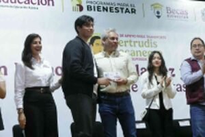 Acompañaron al gobernador el coordinador estatal de Becas para el Bienestar, Juan Pablo Calvillo Tinoco; la secretaria de Educación del Estado, Gabriela Molina Aguilar; la directora del Instituto de Educación Media Superior y Superior, Mariana Sosa Olmeda; la directora general del Instituto Tecnológico Superior de Uruapan, Selene Gómez Barragán; y alumnas y alumnos beneficiados.