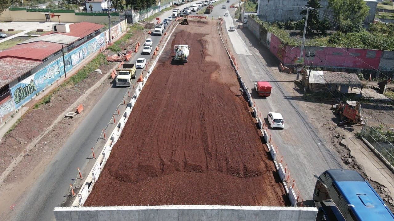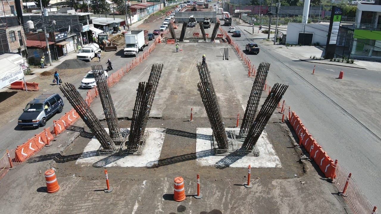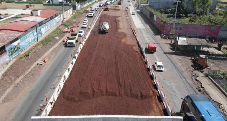 Registra un avance del 67 por ciento y cuenta con laterales de concreto, rampas y columnas para la estructura metálica, misma que está por terminarse en el corto plazo con una extensión de 420 metros.