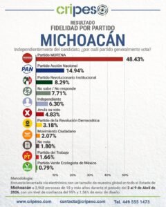Si bien Morena ostenta una intención de voto dominante del 48.43%, cifra que triplica al 14.94% del PAN y que deja en la irrelevancia al PRI con 8.29%, el análisis político sugiere que esta ventaja solo se traducirá en un triunfo sólido bajo la conducción de un perfil como el de Raúl Morón.