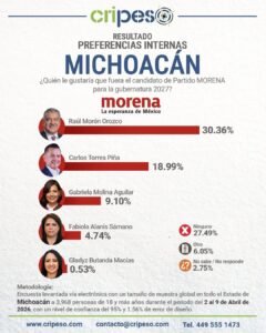 Los resultados del más reciente estudio de la encuestadora Cripeso han dejado claro que, de cara al proceso electoral de 2027, el senador Raúl Morón Orozco no solo lidera las preferencias, sino que se consolida como el único perfil capaz de garantizar la victoria absoluta para Morena en Michoacán.