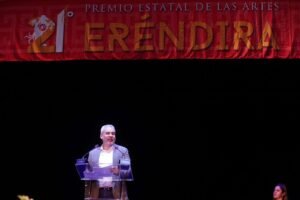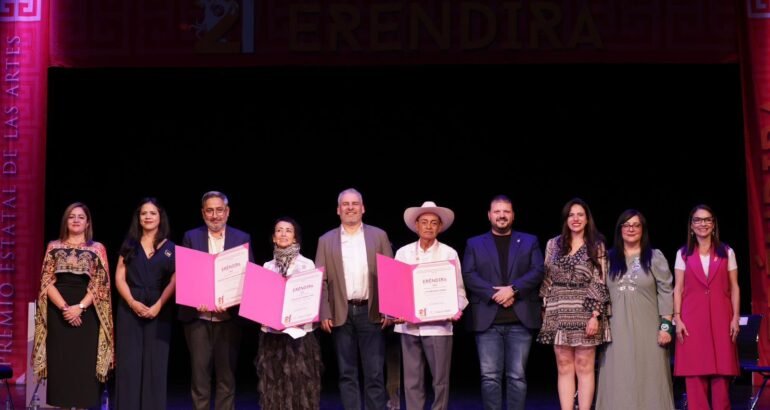 “Hoy el símbolo de Eréndira cobra vida entre nosotros y se encarna en estos tres grandes artistas cuyas obras son un legado que trasciende fronteras y engrandece lo mejor de nuestro Michoacán. Su arte es un tesoro invaluable, un acto de resistencia creativa que protege y expresa las raíces culturales y la identidad de nuestro pueblo”, expresó.