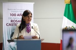 De igual manera afirmó que esta estampilla simboliza el reconocimiento a una mujer que, a través de su arte y pensamiento, enseñó que la educación va más allá de transmitir conocimientos, es también ejercer una inteligencia profundamente humana, capaz de abrazar, comprender y reconocer en cada persona un sueño, una historia y un porvenir. La visión de Rosario Castellanos es una brújula para que la educación sea un instrumento de libertad y dignidad, resaltó la funcionaria estatal.