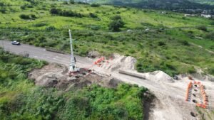 Zarazúa Sánchez indicó que mediante la Dirección de Caminos y Carreteras de la SCOP, se trabaja en 19 obras de drenaje y se realizan reubicaciones de postes de luz para iniciar trabajos de perforación para pilotes, segmento que se espera concluya a finales del año 2026.