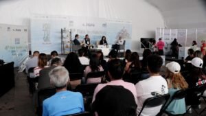 *Morelia, Michoacán, 2 de octubre de 2025.-* La Coordinación del Sistema Penitenciario de Michoacán presentó el libro “Rutas de Vuelo” en la Feria Internacional del Libro y la Lectura, obra que compila las historias de siete personas privadas de la libertad del Centro Penitenciario David Franco Rodríguez, quienes participaron en el Taller Literario Fénix.