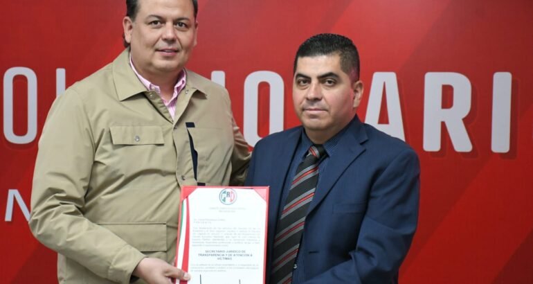 Nombra dirigente estatal a César Pasalagua Cortés como secretario Jurídico, de Transparencia y Atención a Víctimas del PRI Michoacán.