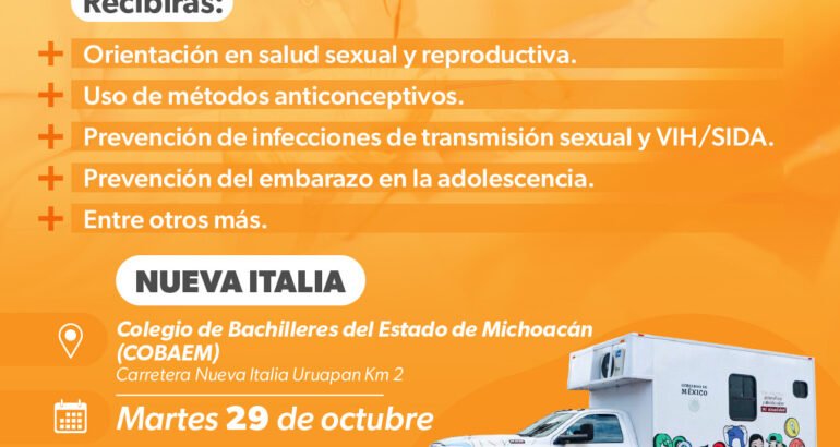 *Morelia, Michoacán, 28 de octubre de 2024.-* Para prevenir infecciones de transmisión sexual y embarazos no deseados en adolescentes, la Secretaría de Salud de Michoacán (SSM) ofrecerá métodos anticonceptivos, así como consejería en salud reproductiva y prevención de embarazos a estudiantes del municipio de Múgica los días 29 y 30 de octubre.