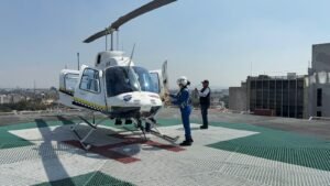 La tripulación aeromédica realizó el abordaje del órgano y del personal médico en el helipuerto del Hospital de Alta Especialidad del Instituto de Seguridad y Servicios Sociales de los Trabajadores del Estado (ISSSTE) para ser llevado hacia el Centro Médico Dalinde.