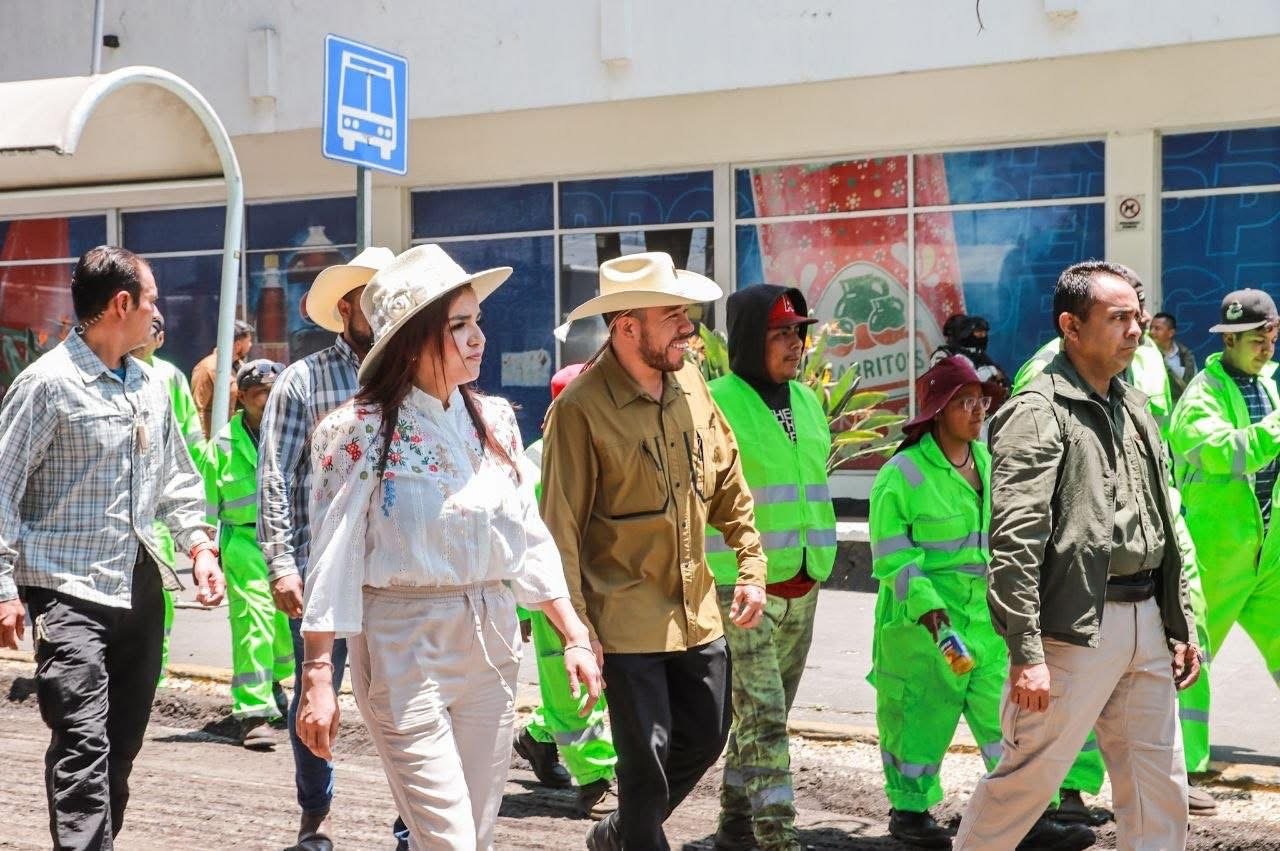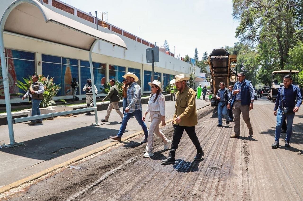 La presidenta municipal, Grecia Quiroz, supervisó el avance de los trabajos de reencarpetado en Paseo Lázaro Cárdenas, obra que ejecuta el Gobierno del Estado, acompañada por el secretario de Obras Públicas y Movilidad, Esteban Constantino Magaña.