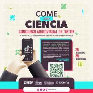 *Morelia, Michoacán, 25 de agosto de 2025.-* El Instituto de Ciencia, Técnica e Innovación (ICTI), junto con la Secretaría de Agricultura y Desarrollo Rural (Sader) y el Sistema Michoacano de Radio y Televisión (SMRTV), lanzaron una convocatoria dirigida a jóvenes de 18 a 30 años para crear videos cortos que reflejen propuestas innovadoras en temas como la conciencia ambiental, alimentaria y agroecológica.