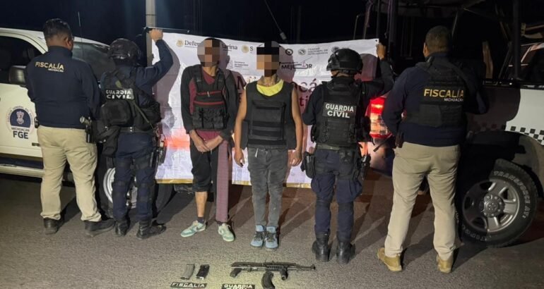*Morelia, Michoacán, 1 de abril de 2026.-* Derivado de un operativo interinstitucional implementado tras un enfrentamiento entre civiles armados en la comunidad de San Agustín del Pulque, municipio de Cuitzeo, elementos de la Secretaría de Seguridad Pública (SSP), en coordinación con la Fiscalía General del Estado (FGE), detuvieron a dos hombres en posesión de armamento.