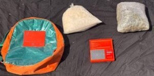 Posteriormente, en el municipio de Huetamo, sobre la carretera Zitácuaro-Ciudad Altamirano fue localizada en estado de abandono una mochila con dos envoltorios que contenían 900 gramos de aparente metanfetamina y 500 gramos de marihuana.