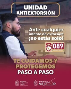 La SSP exhorta a la ciudadanía a no realizar depósitos ni transferencias ante llamadas sospechosas, mantener la calma y reportar de inmediato cualquier intento de extorsión a través de la línea de Denuncia Anónima 089, el número de emergencias 911 o mediante la aplicación 911 Michoacán, disponible para su descarga.