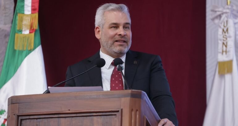 *Morelia, Michoacán, 30 de abril de 2026.-* En el estado, únicamente la Universidad Michoacana de San Nicolás de Hidalgo (UMSNH) cuenta con la garantía constitucional del 4.5 por ciento del presupuesto estatal, así lo señaló el gobernador Alfredo Ramírez Bedolla, tras referir que esto le permite estabilidad financiera a la Casa de Hidalgo.