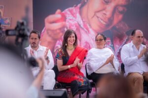 En la patio central de la Huatapera, Plaza Morelos de manera especial, la funcionaria hizo referencia a la presidenta Municipal de Uruapan, Grecia Quiroz, a quien describió como una mujer fuerte y resiliente, ejemplo del talento femenino que distingue a Michoacán. Destacó que, como ella, muchas mujeres indígenas y creadoras continúan abriendo camino y construyendo futuro desde sus comunidades.