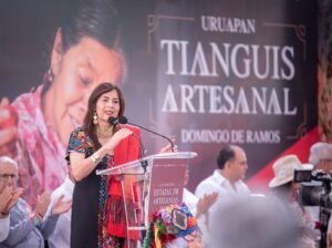 En la patio central de la Huatapera, Plaza Morelos de manera especial, la funcionaria hizo referencia a la presidenta Municipal de Uruapan, Grecia Quiroz, a quien describió como una mujer fuerte y resiliente, ejemplo del talento femenino que distingue a Michoacán. Destacó que, como ella, muchas mujeres indígenas y creadoras continúan abriendo camino y construyendo futuro desde sus comunidades.