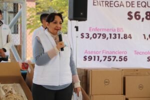 *Morelia, Michoacán, 27 de enero de 2025.-* La rectora de la Universidad Tecnológica de Morelia (UTM), Graciela C. Andrade García Peláez realizó la entrega de equipo por 6.8 millones de pesos, destinado a las carreras de Enfermería Bilingüe Internacional, Gastronomía, Mantenimiento Industrial, Mecatrónica, Biotecnología, Asesor Financiero y Tecnologías de la Información e Innovación Digital.
