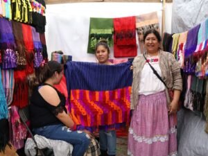 La maestra artesana María de los Ángeles Rodríguez Bautista, originaria de Ahuirán, en el municipio de Paracho, declaró que participar en el tianguis artesanal más grande de Latinoamérica es una gran emoción porque puede dar a conocer los rebozos en telar de cintura que realiza y que cada año se ubican en la preferencia de sus clientes y nuevos visitantes por el diseño colorido que incorpora en sus piezas.